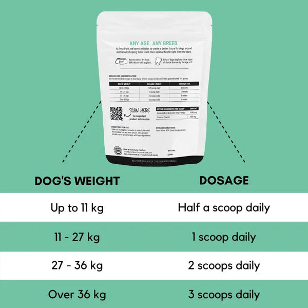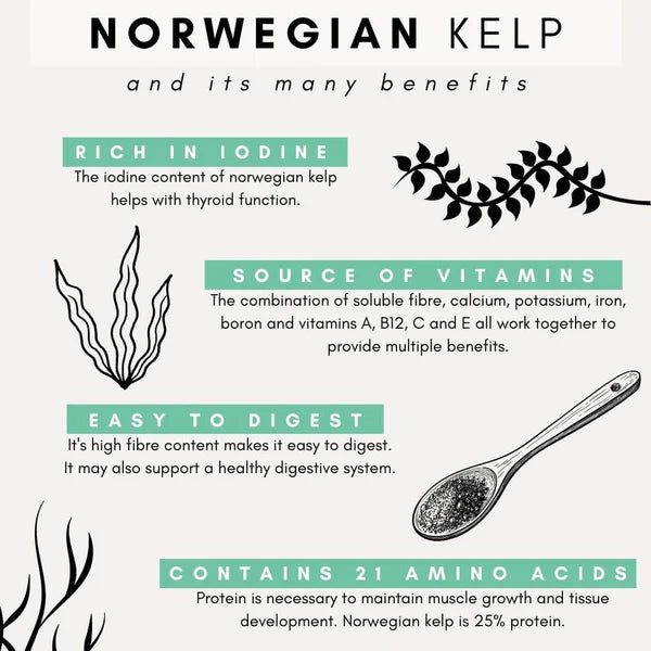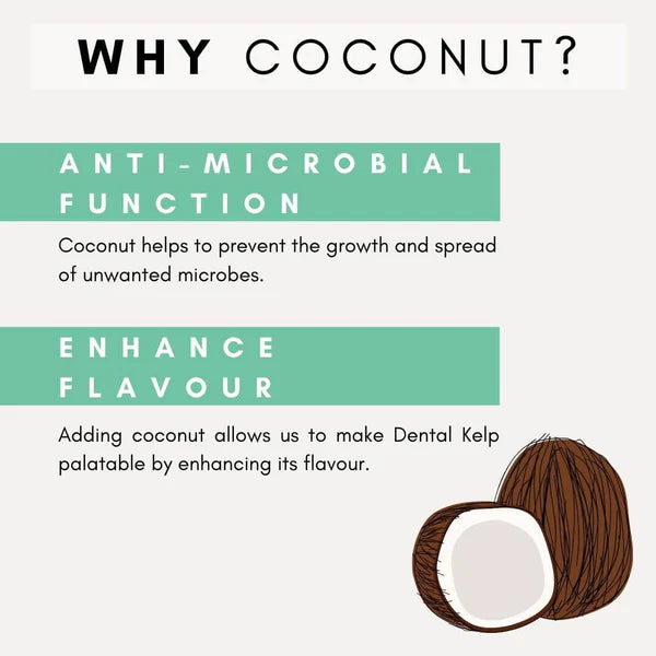 Norwegian Kelp (brown seaweed) has natural anti-adhesive, antibacterial and anti-inflammatory properties. This means by feeding daily, we can reduce levels of bacteria from sticking to the tooth enamel and minimise tartar build up.