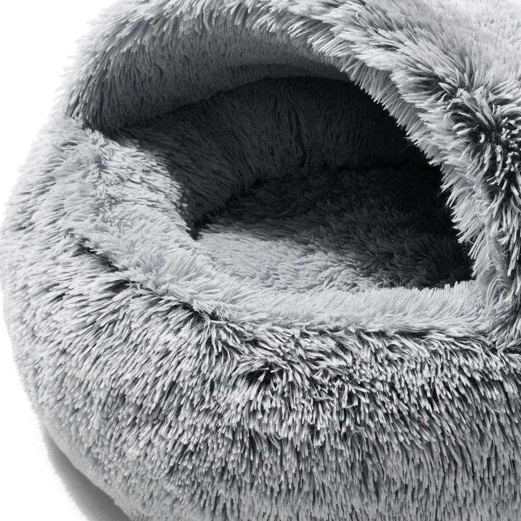 The Hoodie Cuddler is specially designed for dogs who like to burrow. Calming and comforting in luxurious long pile faux-fur, this new hooded-style bed has a cave-style pocket and is perfect for nestling, snuggling pets or those with anxiety. Its cosy hooded cover is soft and lined with faux-fur all the way through, is designed to stay up, and creates a deep, calming space for your pet. Dogs love to scratch, turn and settle into a curled up position, feeling supported and secure.